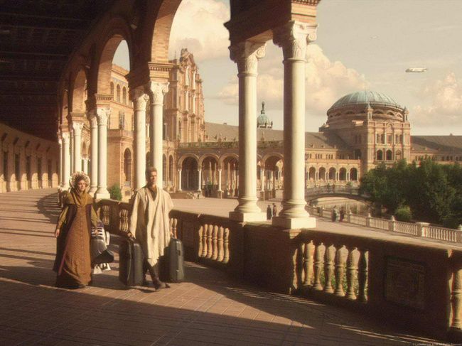 The Plaza de España has been used as a filming location, including scenes for the 1962 film Lawrence of Arabia. The building was used as a location in the Star Wars movie series Star Wars: Episode II – Attack of the Clones (2002) — in which it featured in exterior shots of the City of Theed on the Planet Naboo.[5] It also featured in the 2012 film The Dictator.