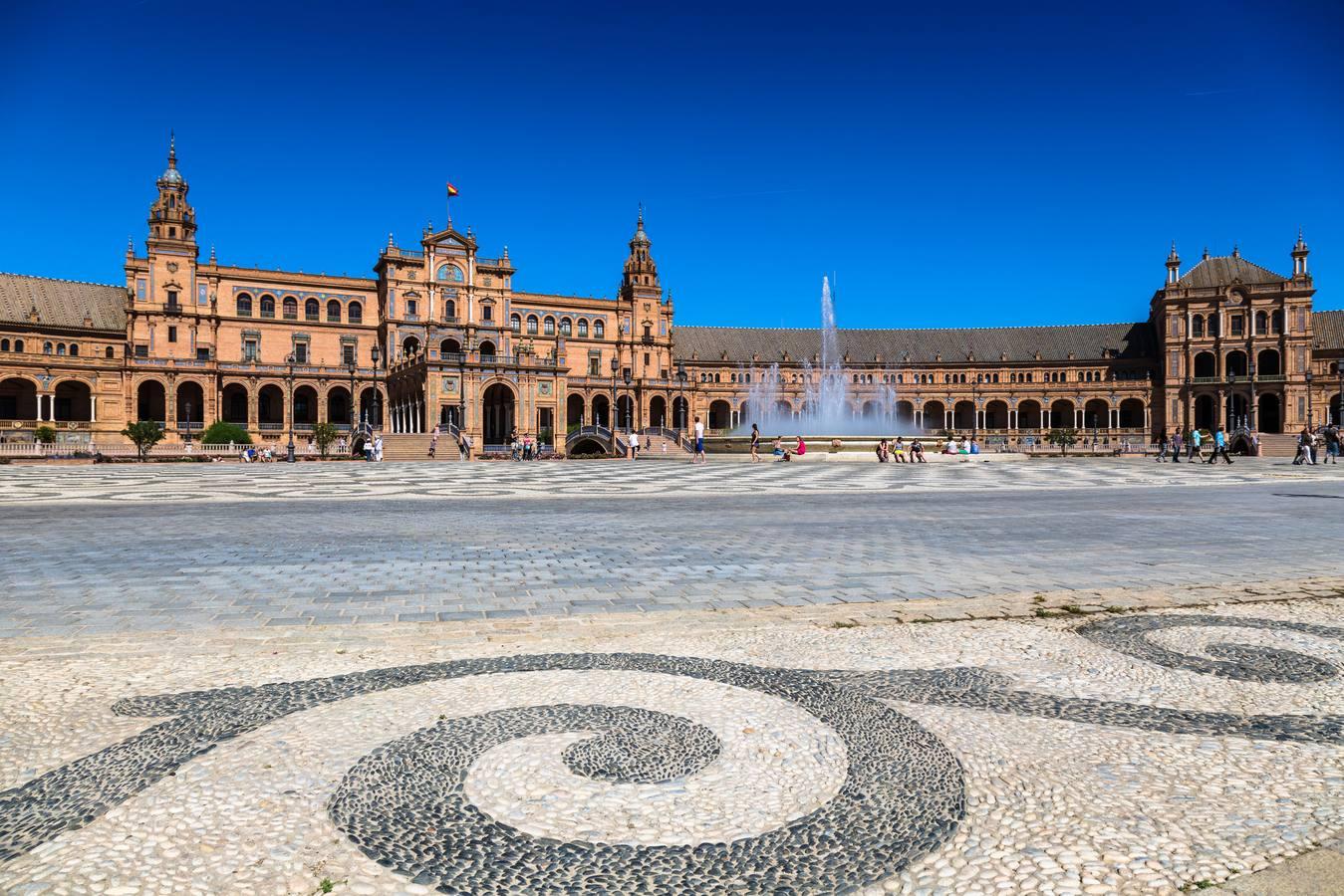 Today the Plaza de España mainly consists of Government buildings. The central government departments, with sensitive adaptive redesign, are located within it. The Plaza’s tiled Alcoves of the Provinces are backdrops for visitors’ portrait photographs, taken in their own home province’s alcove. Towards the end of the park, the grandest mansions from the fair have been adapted as museums. The farthest contains the city’s archaeology collections. The main exhibits are Roman mosaics and artefacts from nearby Italica.